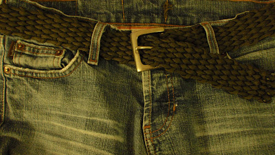 My husband, who is really in to survival gear, made me this sweet woven belt out of parachord and gave it to me for Christmas. So not only does it look super stylish and cool, but I can cut and unravel it and use it to lower myself down a ravine (each strand of parachord can hold up to 500 pounds) or fashion something to catch some dinner if I find myself stranded and hungry in the wilderness (I think we've been watching too much Bear Grylls :). As soon as I pick his brain for how he made it, I will put up some links and step-by step photos!