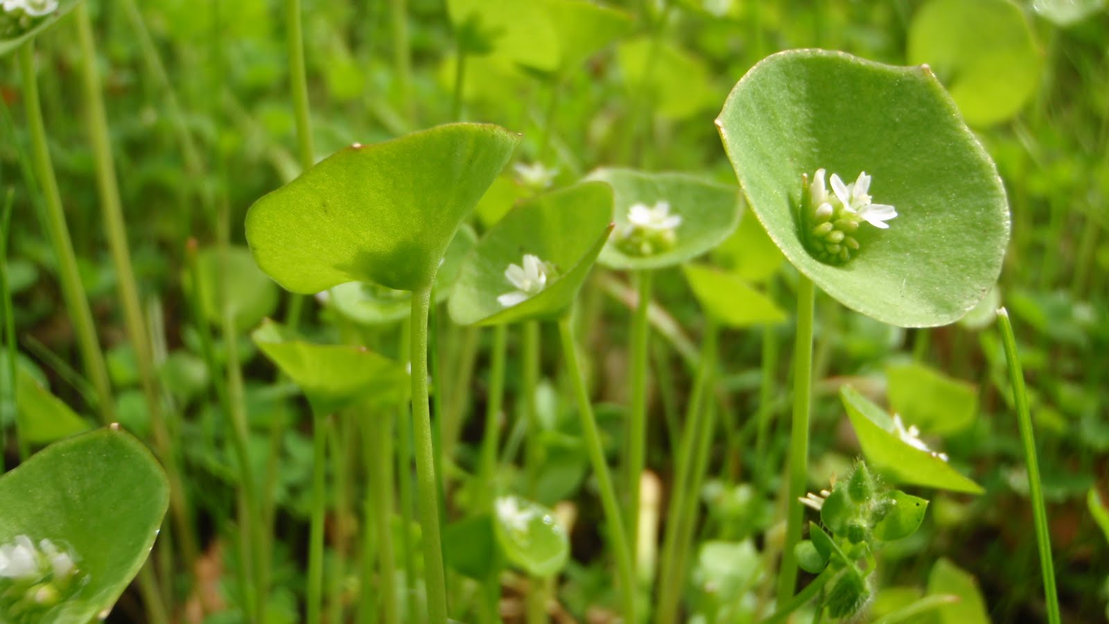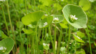 That is miner's lettuce. An tender edible plant full of vitamin A and C. Makes a nice addition to salad.
