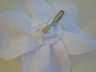 Still on my flower kick, I put together this flower hair clip using scraps of material and fabric glue. It's super easy!!! (ignore my messy, freshly washed hair :)