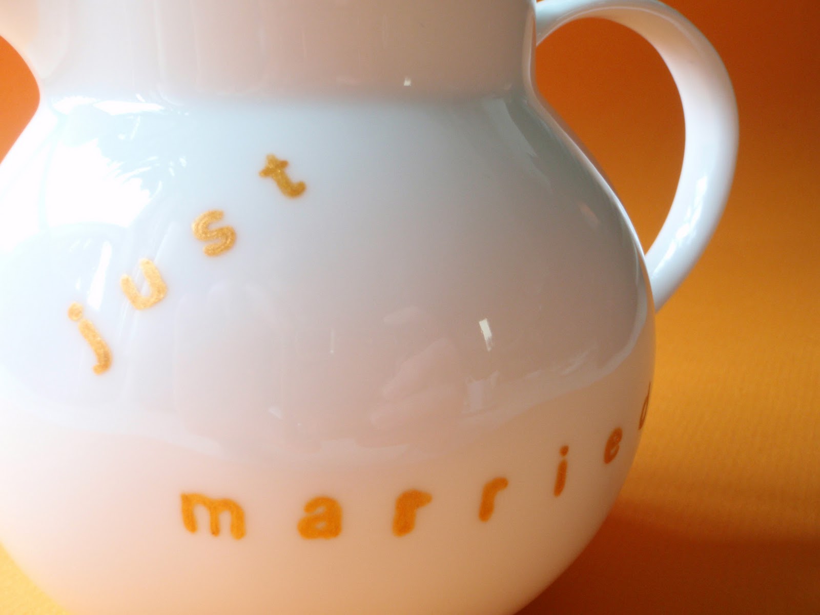 I've been working on a series of hand painted dishes called "just married" which I've shown here in shimmer gold. Don't worry if gold isn't your thing, they are available in many other colors! Check them out in my shop. :)