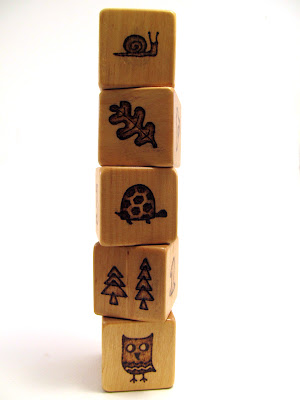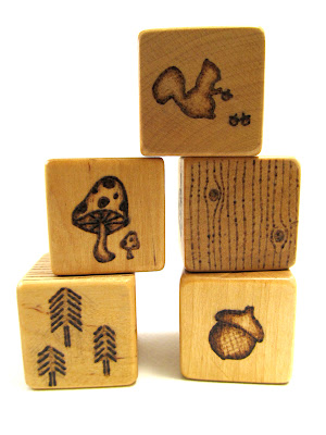 Each woodland themed design you see is my own, which I first sketched on paper, then on the block, finally burning with a wood burning tool (similar to a soldering iron).