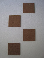 As part of my home office revamp, I wanted to create a place for keeping appointment reminders, coupons, magazine clippings etc. visible so I actually use them. What a concept? But I wasn't too excited about a plain old cork board. So I put up some cork tiles (available at most office supply stores) in a fun pattern.